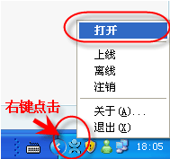 如果您安裝的是獨(dú)立客戶端模式,則在登陸后,將在桌面的右小角有一個(gè)kf000在線客服系統(tǒng)的圖標(biāo),鼠標(biāo)右鍵點(diǎn)擊小圖標(biāo),選擇“打開”就進(jìn)入客服端監(jiān)控窗口。