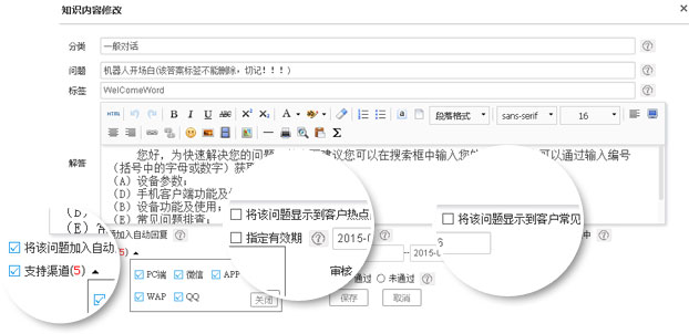 365webcall智能知識(shí)庫全媒體接入,統(tǒng)一管理、智能解答、熱點(diǎn)問題、常見問題、人員權(quán)限管理。